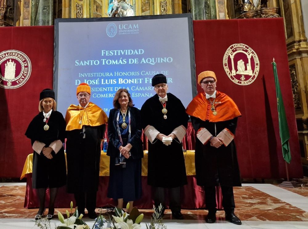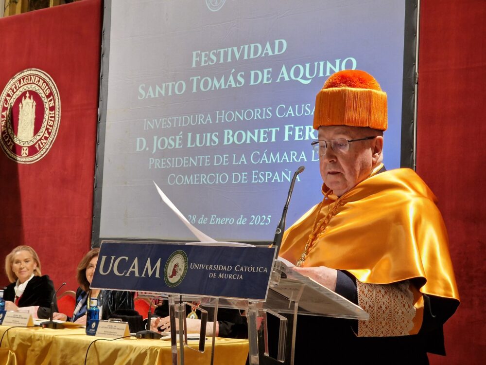 El acto, presidido por Dolores García Mascarell, presidenta de la UCAM, ha contado con la presencia de destacadas personalidades del ámbito empresarial, institucional y académico. Durante la laudatio, Gonzalo Wandosell, decano de la Facultad de Economía y Empresa de la UCAM, ha resaltado la trayectoria empresarial y el compromiso con el servicio público de Bonet, así como su defensa del papel fundamental de la empresa familiar en la economía española.
